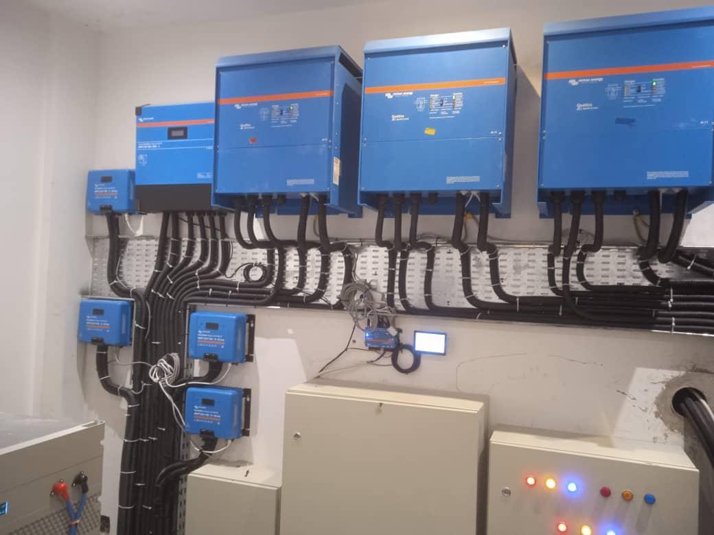 Installation of a 45 kVA Victron inverter system with battery backup to support continuous power for a large residence, ensuring seamless switchover and critical-load protection.